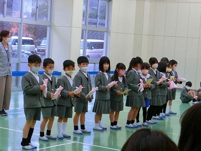 学年集会では、すてきな3年生になるための、3学期のめあてを考えました。どの子も自分の頑張りたいことをめあてにしてしっかりと書いていました。