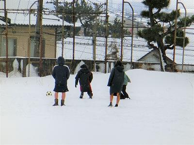 先日からの降雪で、運動場に一面の銀世界が広がりました。