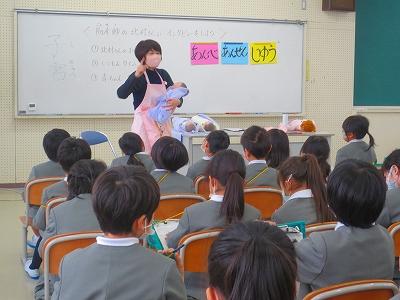 2年生は生活科「これまでのわたし これからのわたし」の学習で、助産師・北村牧子さんをお招きして、お話をしていただきました。