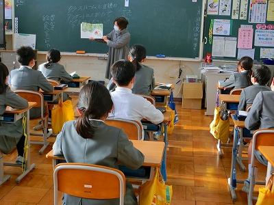 今週、がらがらどんさんが読み聞かせにきてくださいました。その日の朝は、気温がぐっと下がり、路面は凍結状態。そんな中でも、朝の早くから学校にきてくださるボランティアさん。本当に有難いです。