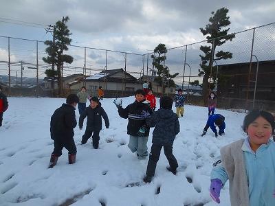 運動場の雪は、溶けてきていましたが、子どもたちは雪の積もっているところを探してうまく遊んでいました。