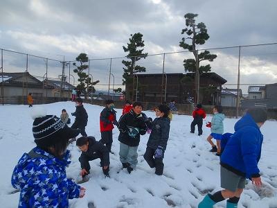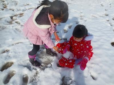 雪だるまをつくったり、雪の上に寝転がってみたり、雪合戦をしたりなど思い思いに遊んでいて、みんなとても楽しそうでした。
