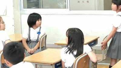 本校では、毎朝5,6年生の企画委員の人が、あいさつ運動を展開しています。ある時から、企画委員がいつものように「おはようございます」と挨拶をしていると、1年生が学校から出てきて、企画委員の横に並び、挨拶のお手伝いをしてくれるようになりました。