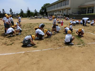 6月20日のお昼の掃除は、全校外そうじでした。夏を迎え、運動場は雑草が目立つようになりました。校務員やスクールサポートスタッフが業務の合間に除草作業をすることもありますが、広い運動場だけに効果はあまりありません。そこで、本格的に暑くなる前に、子ども達で、草むしりをしました。運動場の雑草は根がしっかりと張っているため、なかなかの重労働ですが、そんな中でも、一生懸命無心で草むしりをする姿や、上級生が下級生のお世話をする姿も見られた時間でした。