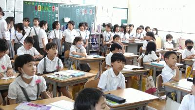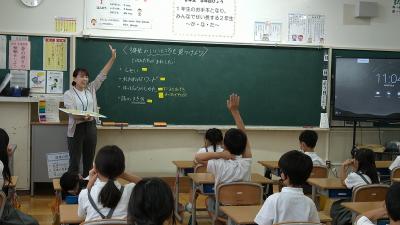 3年1組と3年2組の授業を見た後、2年生は、自分達の教室に戻り、3年生のどんな所がかっこよかったかを話し合っていました。3年生の自分の考えを伝える力や、背中の伸びた姿勢などを次々と発表することができました。