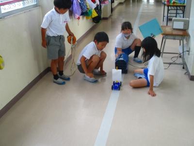 理科では、風とゴムのはたらきについて学習しています。今までは植物や昆虫の観察が中心でしたが、いよいよ予想をたてて実験をしています。班で協力しながら、初めての実験に挑戦していました。