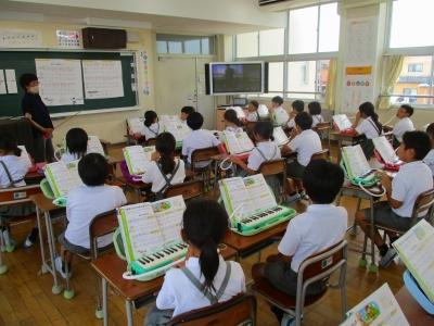 音楽では、リコーダーと鍵盤ハーモニカに挑戦しています。今年から初めて取り組んでいるリコーダーも綺麗に出せる音が少しずつ増えてきました。鍵盤ハーモニカも指またぎや指くぐりをしなければならず、難しそうな様子も見られましたが、1曲弾けるようになってきました。