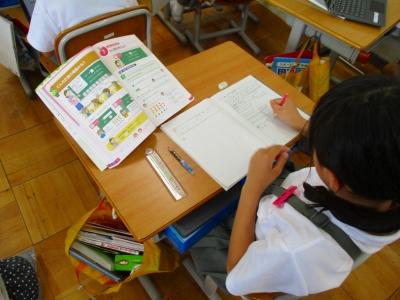 算数では、あまりのあるわり算に挑戦しています。一人一台端末を活用することで、具体的な場面を想像しながら計算の方法を考えています。初めは慣れない操作で難しいこともありましたが、自分の考えを上手く表現することができるようになってきました。