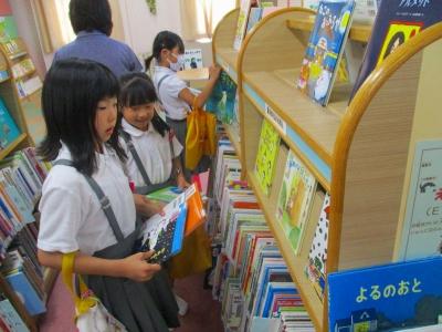 6月、各クラスごとに町立図書館に招待されました。今までに町立図書館に行ったことがある児童もいましたが、改めて町立図書館の使い方や、図書館ではどんな仕事をしているのか、本の分類のされ方などを学びました。普段は入れない場所も見せていただくなど貴重な経験になりました。