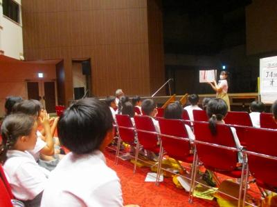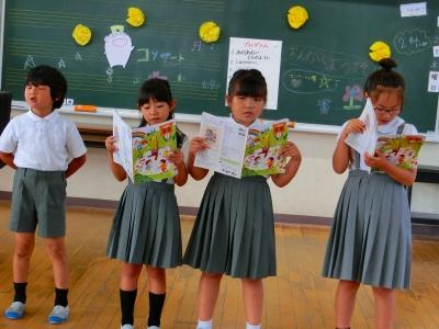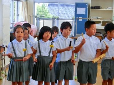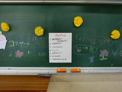 1学期の音楽の時間で習った歌を聞いてもらいたくて、コンサートを計画しました。お客さんは1年生、校長先生、担任の村瀬先生です。
