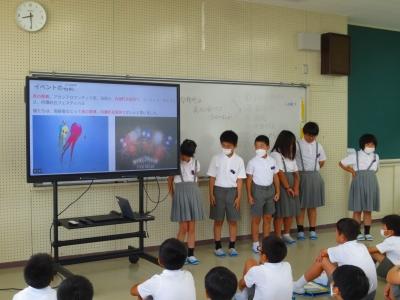 7/3の児童集会では、「くちばし」の学習で作った、くちばし・動物クイズのお知らせをしました。