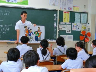 津幡警察署の警察官の方が学校に来て下さり、2年生と5年生のピュアキッズスクールがありました。
