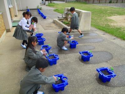 あさがおを植え、毎朝欠かさず水やりをしています。