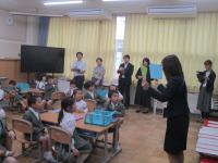 1年生の学習「ぶんをつくろう」を全校の先生で参観しました。
