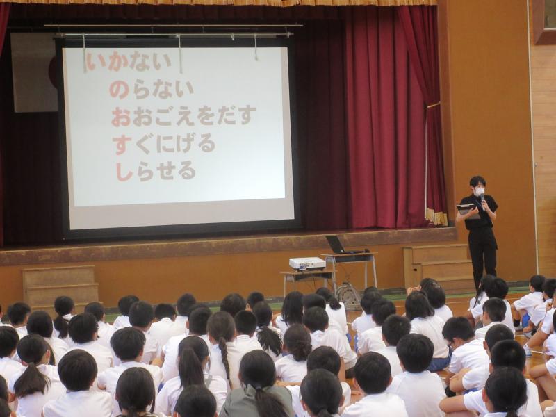 続いて、「不審者への対応の仕方」について、今回は、「いかのおすし」の特に、『「いか」ない』と『「し」らせる』について、子供たちと再度しっかり考え、確認することができました。