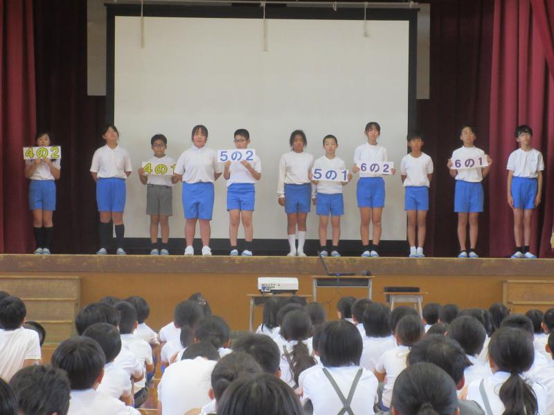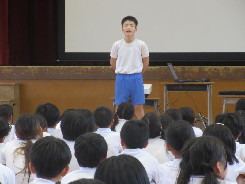 児童集会では、学級代表と委員長・副委員長の任命式があり、それぞれがより良い学校を創るための抱負を発表しました。