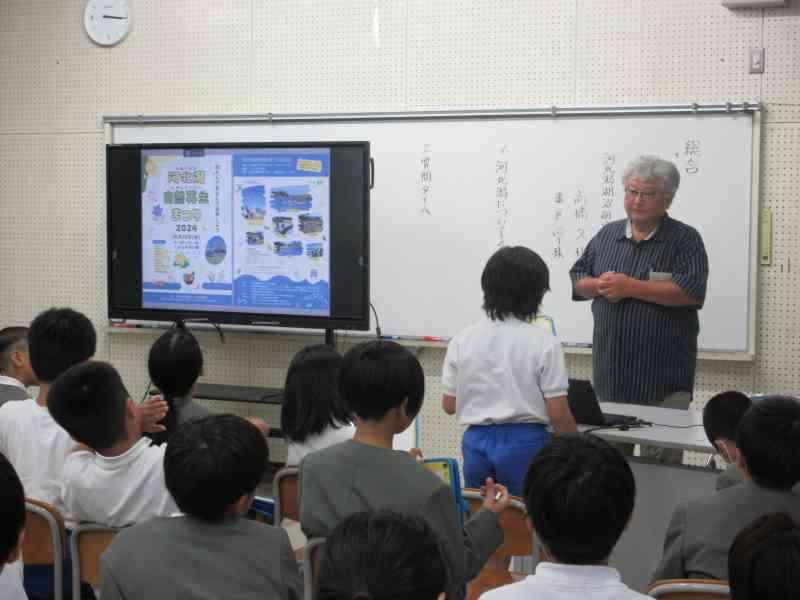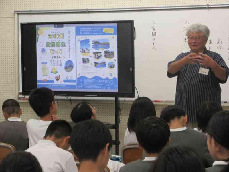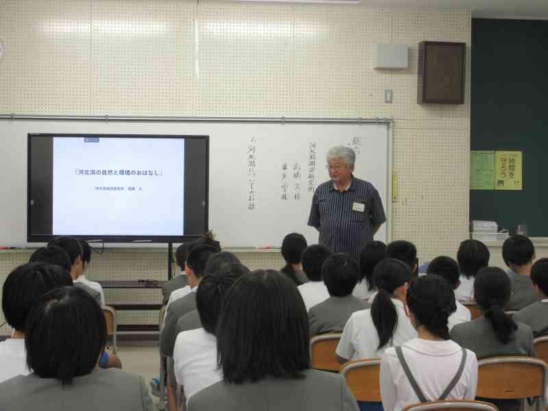 NPO法人河北潟湖沼研究所より、高橋久様、番匠尚子様をお迎えし、授業を行いました。実際に河北潟と関わり続けている人たちから、1学期に自分たちが調べてきたことよりも、より詳しく河北潟のことを学ぶことができました。これからの学習につなげていきます。
