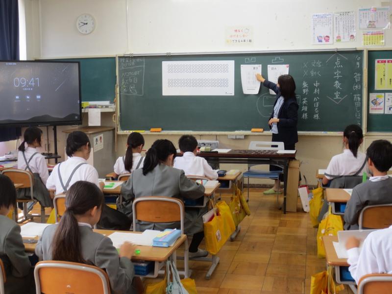 10月1日(火)の1・2限目にショーン スミスさんをお迎えし、Unit5のまとめをしました。2学期が始まってから児童は、外国の方に道案内をするために「どのように道順を伝えるといいか」を学習してきました。今日は、とても緊張したという振り返りも多くみられましたが、みんな準備してきた成果を発揮していました。