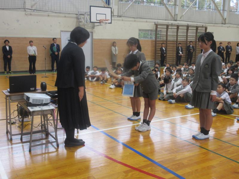 表彰伝達・・・夏休みに取り組んだ各種コンクールや2学期に入って参加・応募した作品展等の表彰がたくさんありました。