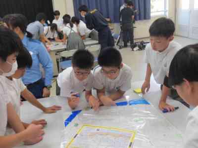 自分たちが安全に過ごしていくために、内灘町の「防災マップ作り」に取り組み、危険な場所や避難場所についての理解を深めました。