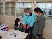 自分で描いたものが凧の形になってきて、うれしそうな6年生でした。