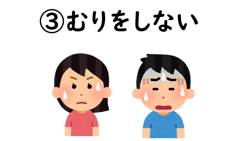 熱中症を予防するためには、次の3つが大切です。特に水分補給については、喉が渇いたなと感じる前にこまめに水分を取ってほしいと思います。熱中症かも?と思ってから水分をとっても間に合わないこともあるようです。