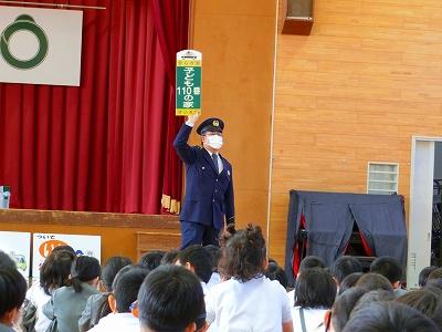 また、実際に町の中で声を掛けられ連れ去られそうになった場合の対応についても児童代表との実演で教えて下さり、実りの多い時間となりました。