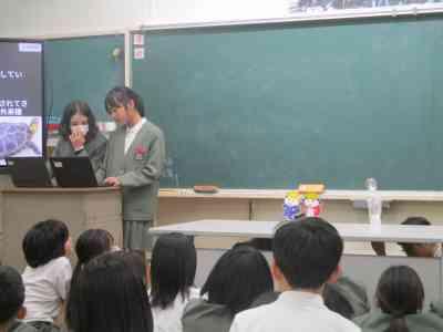 当日は、2年生の真剣に話を聞く姿や、うれしそうにクイズに答える姿が見られ、3年生の努力がしっかりと伝わっていることを感じました。