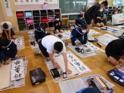 2限目の始業式の後、全校で「書初め大会」が行われました。