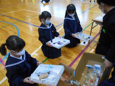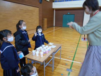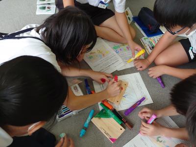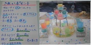 5年生が図工の時間に、色水を使って「きれい!」を表現しました。