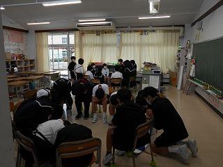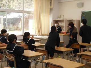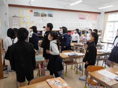 教室で最後の授業を受け、玄関で最後のお別れの言葉を伝えてくれました。