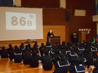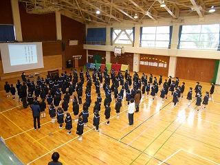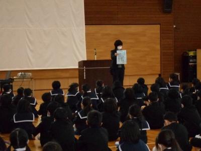 次に、冬休みの過ごし方について、生徒指導の先生から5つの約束を守ってほしいと話がありました。
