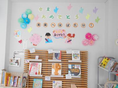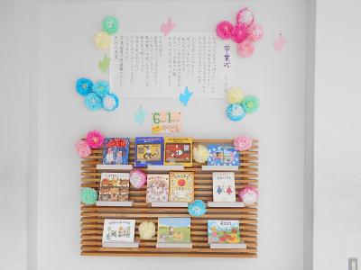 今年度は、月に一度、図書ボランティアさんが来校され、飾りつけをしてくれます。