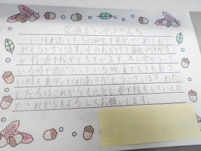 巡視ボランティアの方や地域のみなさんのおかげで、子ども達は安心して登下校することができています。