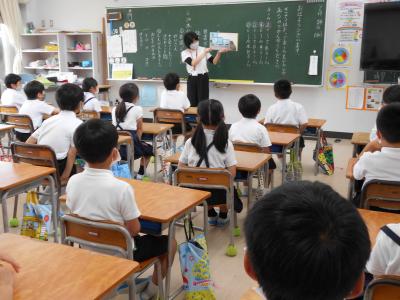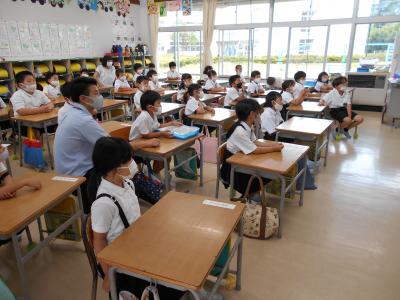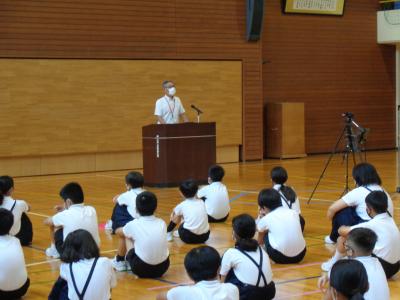 早速、2限目の前半は高学年、後半は低学年に分かれて、始業式を行いました。