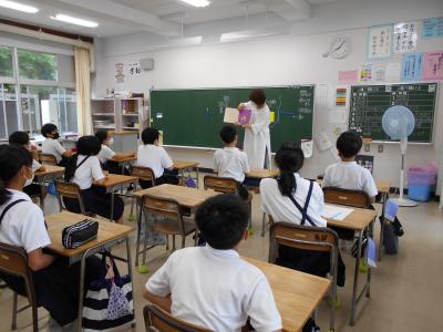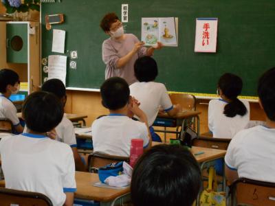 3年2組 宮下さんによる「からすのおかしやさん」などの読み聞かせ。