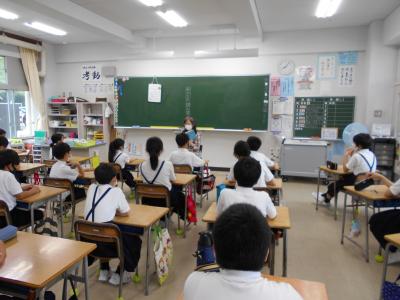 4年生が道徳の授業でいろんな国の文化の違いについて学習し、ALTのアレックス先生にアメリカの文化についてお聞きしました。