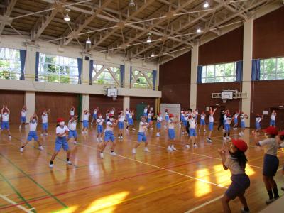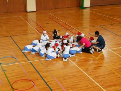 ジャンケンで負ける人が少なく、途中から「あいこの人も足を開いてー」とルールを変更したグループもありました。