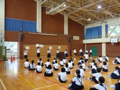 3限目の前半は低学年、後半は高学年の2部に分けて、終業式を行いました。