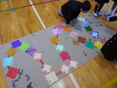 1年生~6年生までの縦割りグループに分かれて、教室で楽しく遊びました。