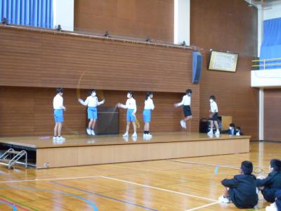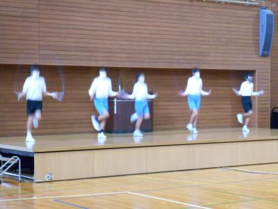 これは、長なわの中を8の字に移動しながら連続ジャンプをし、クラスごとに記録に挑戦する種目です。
