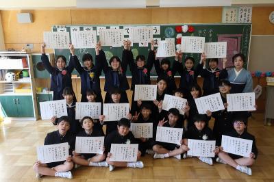 社会を明るくする運動標語コンテスト、MOA美術館児童作品展、リサイクル工作コンクール、図書館を使った調べる学習コンクール、読書感想文コンクール、郡市書写作品展、郡市図画作品展、校内マラソン大会など、たくさんの表彰がありました。