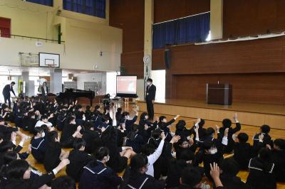 生徒指導の先生から、春休みの過ごし方についてお話がありました。