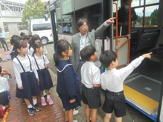 バスに興味津々の子どもたちは、役場のみなさんにたくさんの質問を