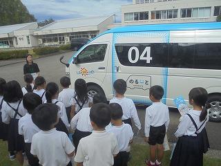 津幡町役場のみなさんに来ていただき、町バスの乗車体験を行いました。