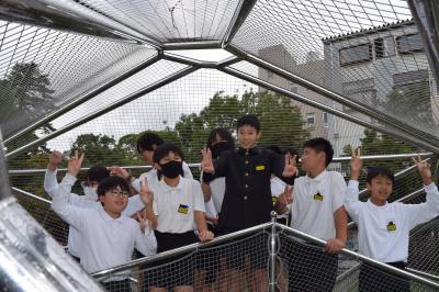 昼休みに6年生と1年生が中庭で遊ぶ姿がみられました。