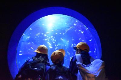 子どもたちは大きな水槽で悠々と泳ぐエイやジンベイザメを見て、