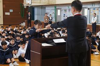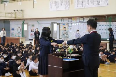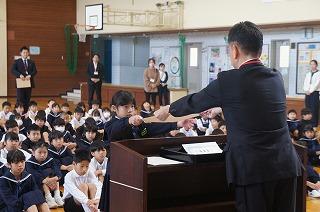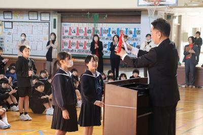 社会を明るくする運動標語コンテスト、MOA美術館児童作品展、リサイクル工作コンクール、図書館を使った調べる学習コンクール、読書感想文コンクール、郡市書写作品展、郡市図画作品展、校内マラソン大会など、たくさんの表彰がありました。