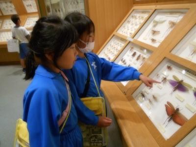 昆虫館では、様々な昆虫の話を聞いたり、観察をしたりしました。普段から昆虫が大好きな3年生は、真剣に聞き入っていました。