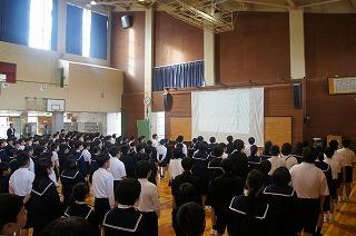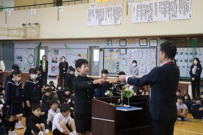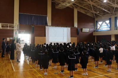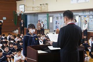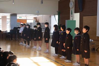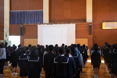 本年度最後の校歌を歌った後、校長先生から進級のお話がありました。